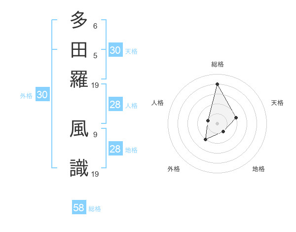 多田羅 風識さんを姓名の画数から五運を鑑定