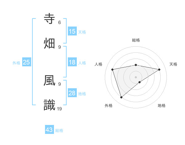 寺畑 風識さんの総格は43画の2点!