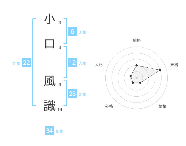 小口 風識さんの総格は34画の2点!