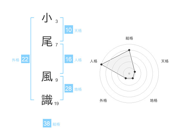 小尾 風識さんの総格は38画の4点!