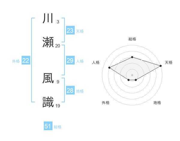 川瀬 風識さんを姓名の画数から五運を鑑定