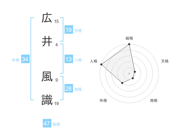 広井 風識さんの総格は47画の5点!