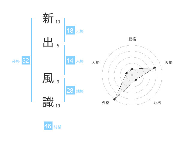 新出 風識さんの外格は32画の5点!