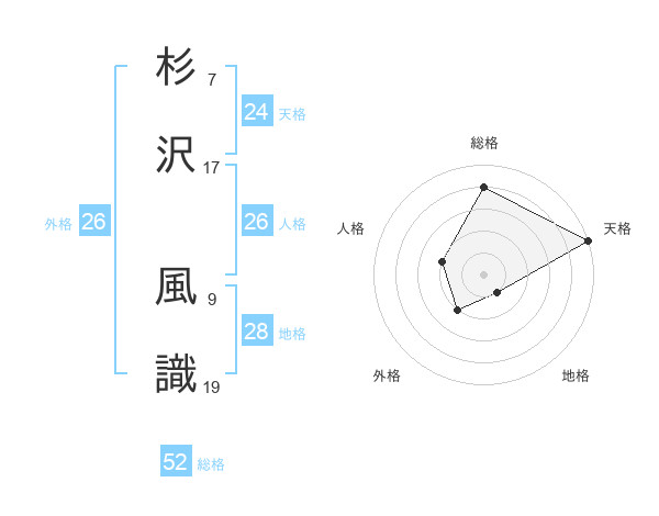 杉沢 風識さんを姓名の画数から五運を鑑定