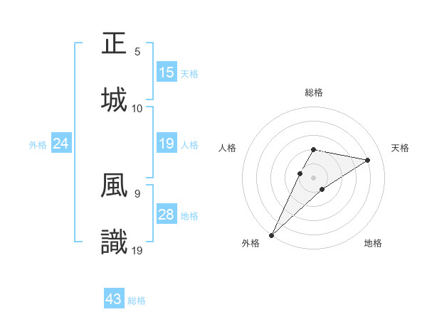 正城 風識さんの外格は24画の5点!