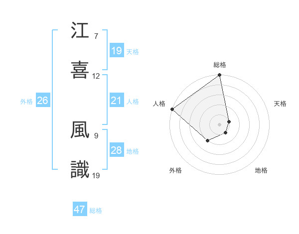 江喜 風識さんの総格は47画の5点!