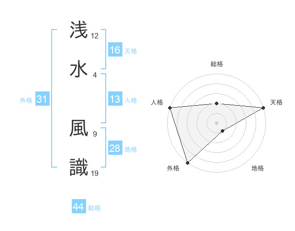 浅水 風識さんの総格は44画の2点!