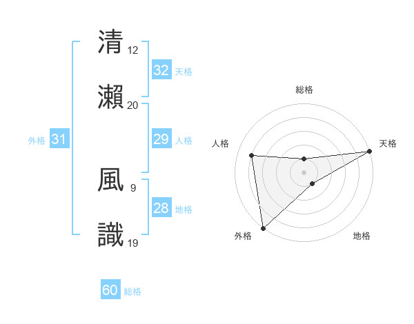 清瀨 風識さんを姓名の画数から五運を鑑定