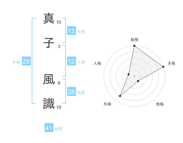 真子 風識さんの天格は13画の5点!