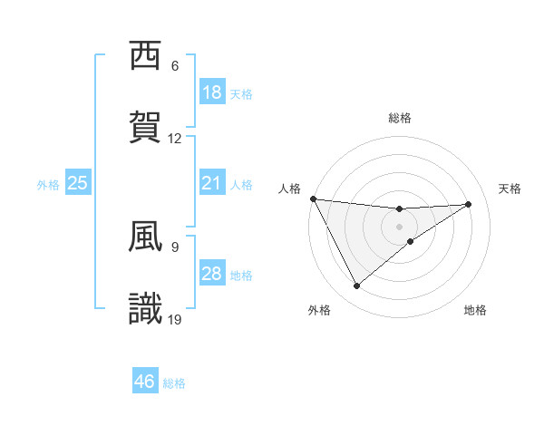 西賀 風識さんの総格は46画の1点!