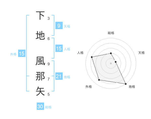 下地 風那矢さんの外格は15画の4点!