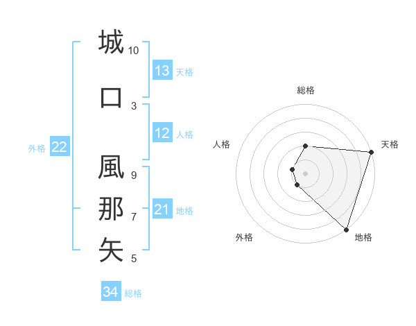 城口 風那矢さんを姓名の画数から五運を鑑定