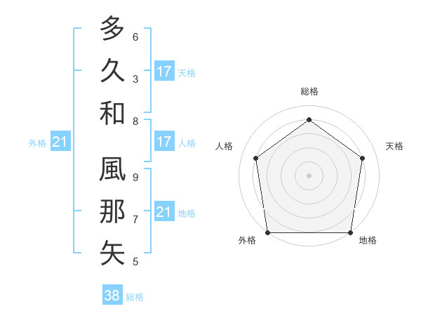 多久和 風那矢さんの外格は21画の5点!