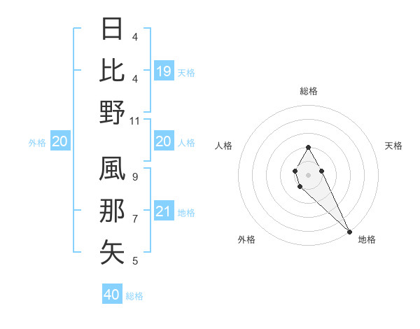 日比野 風那矢さんを姓名の画数から五運を鑑定