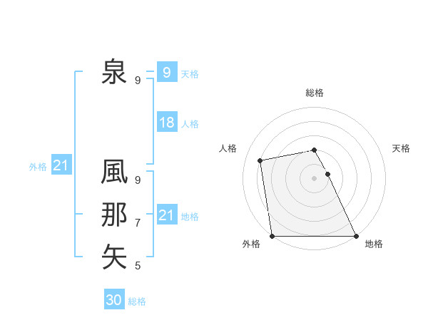 泉 風那矢さんの外格は21画の5点!