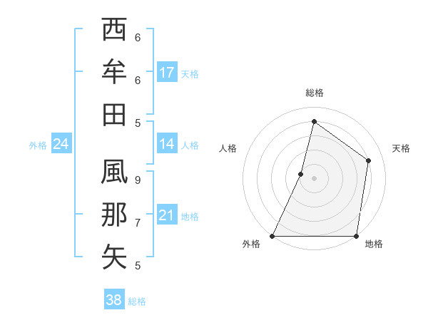 西牟田 風那矢さんの天格は17画の4点!