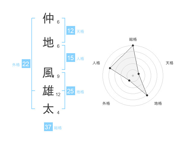 仲地 風雄太さんを姓名の画数から五運を鑑定