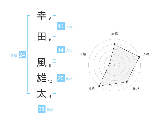 幸田 風雄太さんを姓名の画数から五運を鑑定