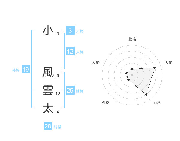 小 風雲太さんの総格は28画の1点!