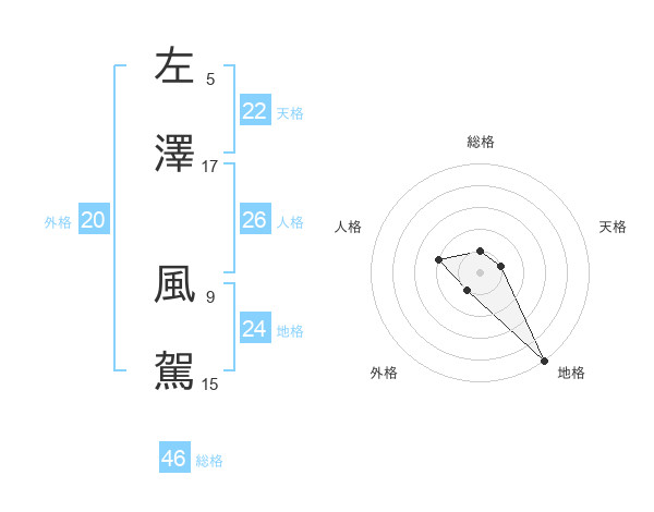 左澤 風駕さんを姓名の画数から五運を鑑定