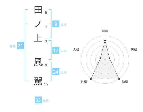 田ノ上 風駕さんを姓名の画数から五運を鑑定