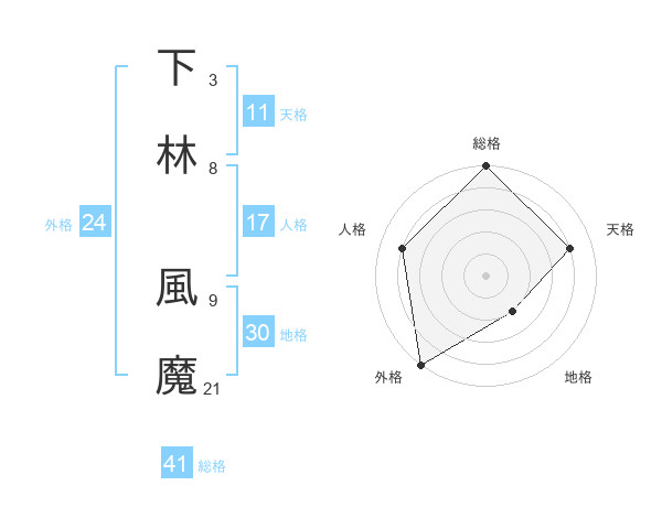 下林 風魔さんの総格は41画の5点!