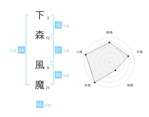 下森 風魔さんの地格は30画の2点!
