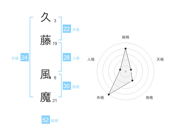 久藤 風魔さんを姓名の画数から五運を鑑定
