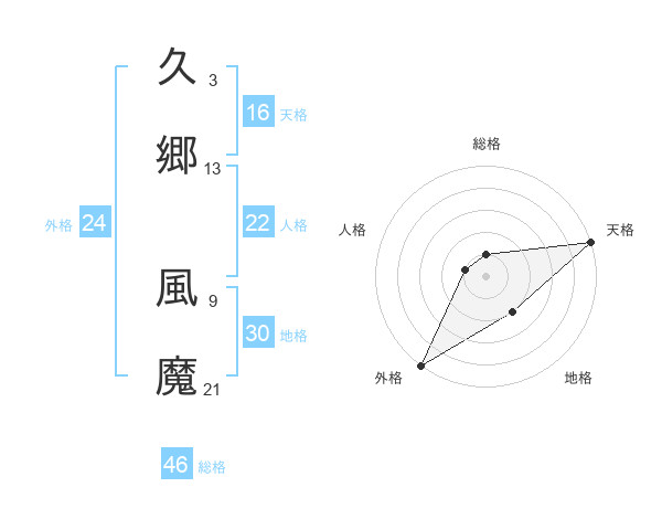 久郷 風魔さんを姓名の画数から五運を鑑定