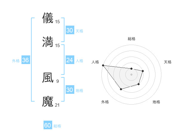 儀満 風魔さんを姓名の画数から五運を鑑定