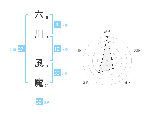 六川 風魔さんの総格は39画の5点!