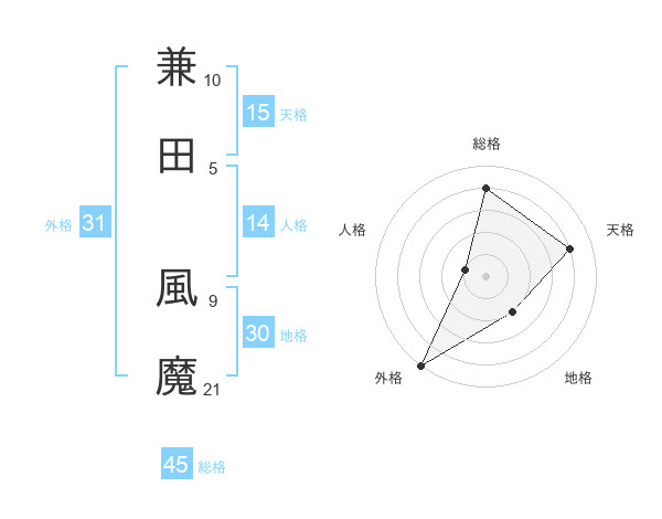 兼田 風魔さんを姓名の画数から五運を鑑定