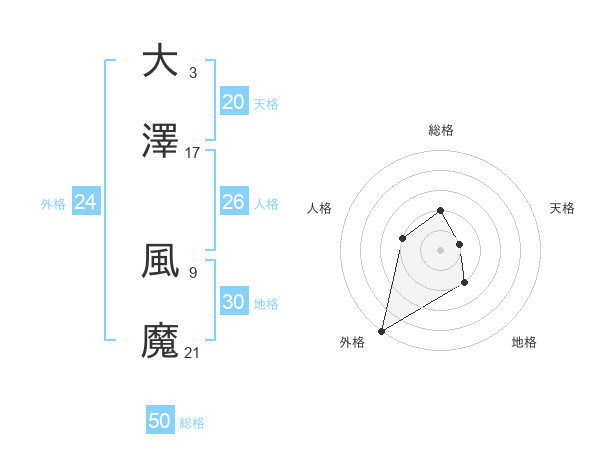 大澤 風魔さんの天格は20画の1点!
