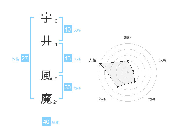 宇井 風魔さんを姓名の画数から五運を鑑定