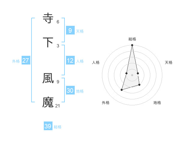 寺下 風魔さんの総格は39画の5点!