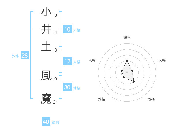 小井土 風魔さんを姓名の画数から五運を鑑定