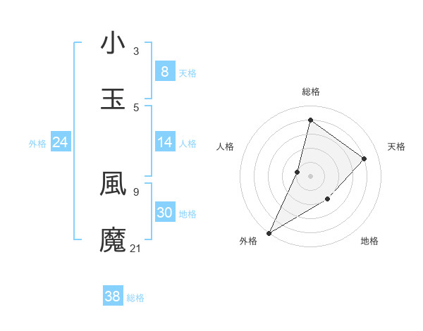 小玉 風魔さんの総格は38画の4点!