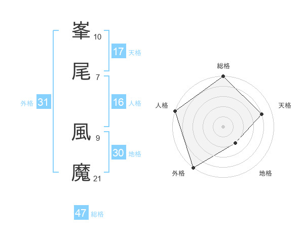 峯尾 風魔さんの総格は47画の5点!