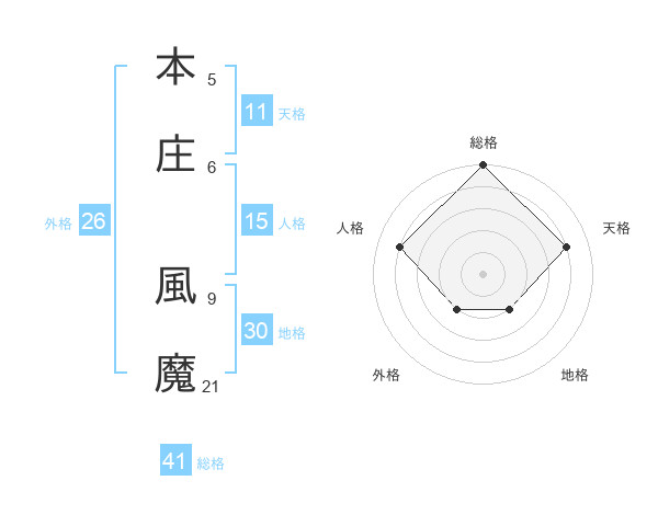本庄 風魔さんの地格は30画の2点!