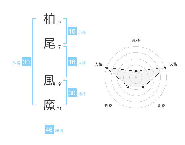 柏尾 風魔さんの天格は16画の5点!