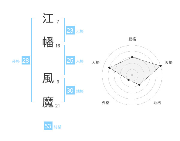 江幡 風魔さんを姓名の画数から五運を鑑定