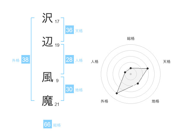 沢辺 風魔さんを姓名の画数から五運を鑑定