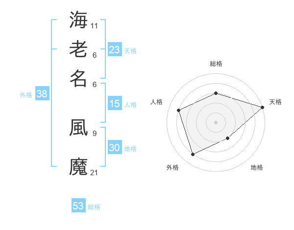 海老名 風魔さんを姓名の画数から五運を鑑定