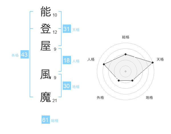 能登屋 風魔さんの総格は61画の3点!