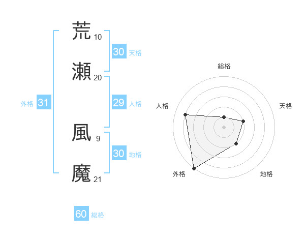 荒瀬 風魔さんを姓名の画数から五運を鑑定