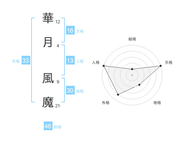 華月 風魔さんの天格は16画の5点!