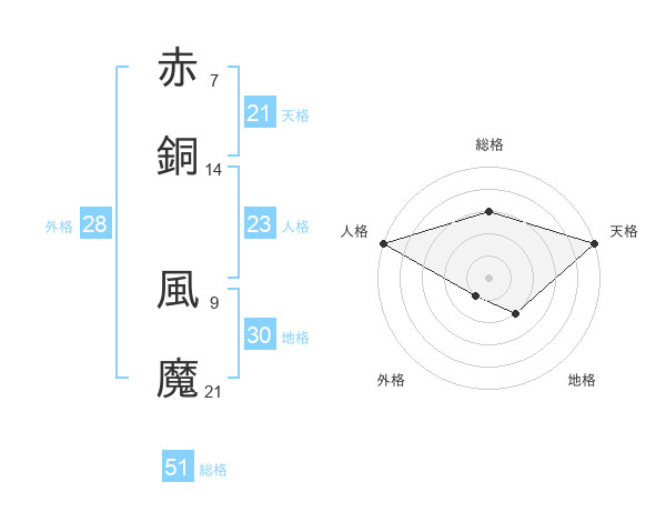 赤銅 風魔さんの総格は51画の3点!