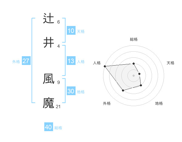 辻井 風魔さんの地格は30画の2点!