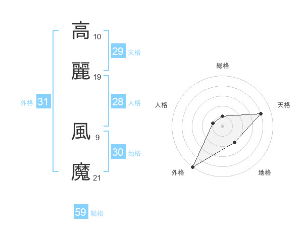 高麗 風魔さんを姓名の画数から五運を鑑定