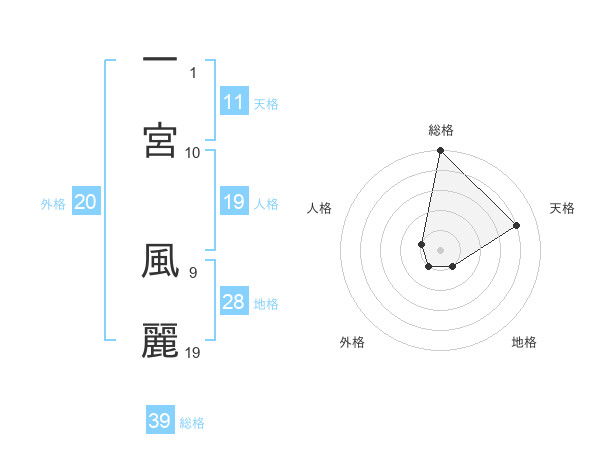 一宮 風麗さんを姓名の画数から五運を鑑定